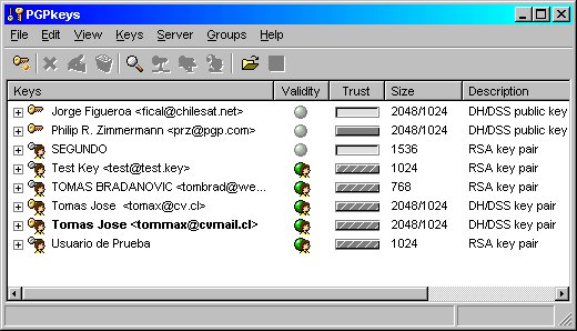 - PGP Keys: abre el anillo de para administrar las claves de PGP