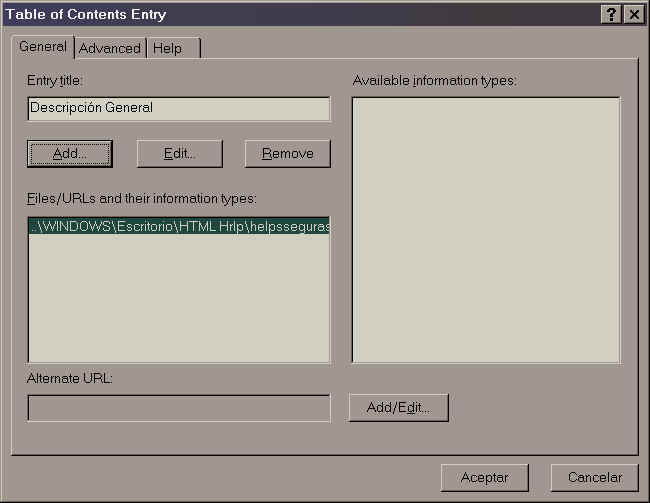 - Este proyecto consistirá en tres páginas escritas en HTML las que se compilarán en un archivo de ayuda. No abordaré ningún detalle como la cración de índices, bookmarks, etc. ya que creo que los importante es aprender rápidamente lo fundamental, el resto se puede obtener en base a experimentación y la propia ayuda del programa.