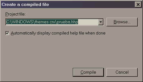 - Voila! esa es toda la ciencia y ya tenemos nuestro primer proyecto sencillo de ayuda. Se llama "prueba.hhp" y lo podemos copiar a cualquier computador con Win98 en adelante y funcionrá en un solo archivo compilado en lugar del montón de hojas HTML e imágenes que teníamos al principio. Fácil ¿no?